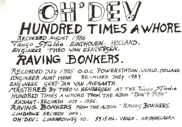 Vinyl / Oh' Dev - 100 Times A Whore / Raving Bonkers