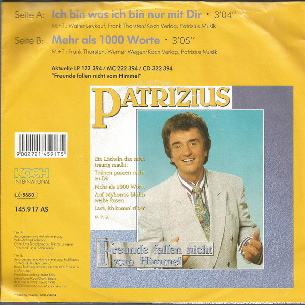 Vinyl / Patrizius - Ich Bin Was Ich Bin Nur Mit Dir