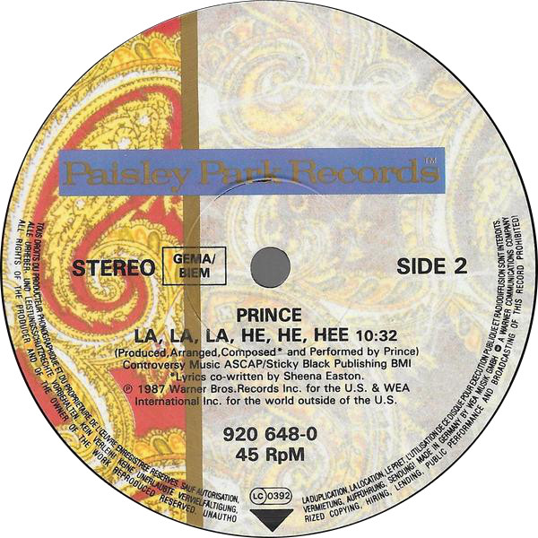 Label: Paisley Park - Cat#: 920 648-0