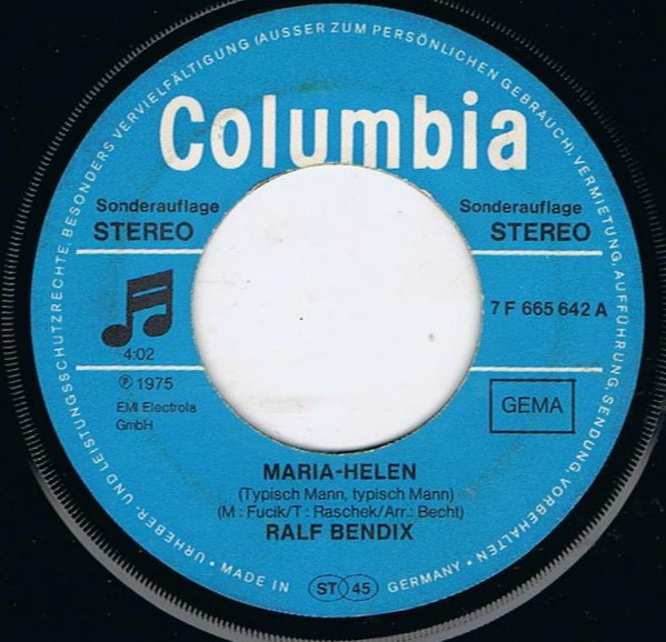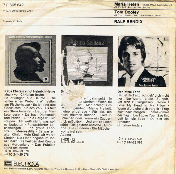 Vinyl / Ralf Bendix - Maria-Helen (Typisch Mann, Typisch Mann) / Tom Dooley