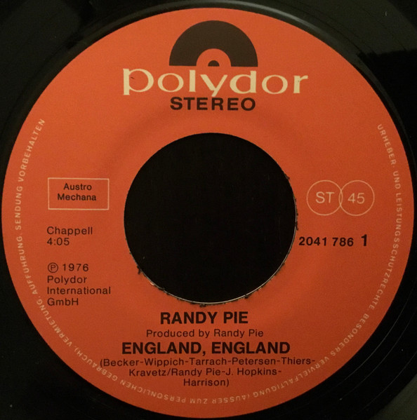 Vinyl / Randy Pie - England, England (We Can't Come)