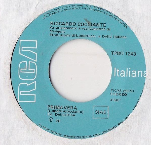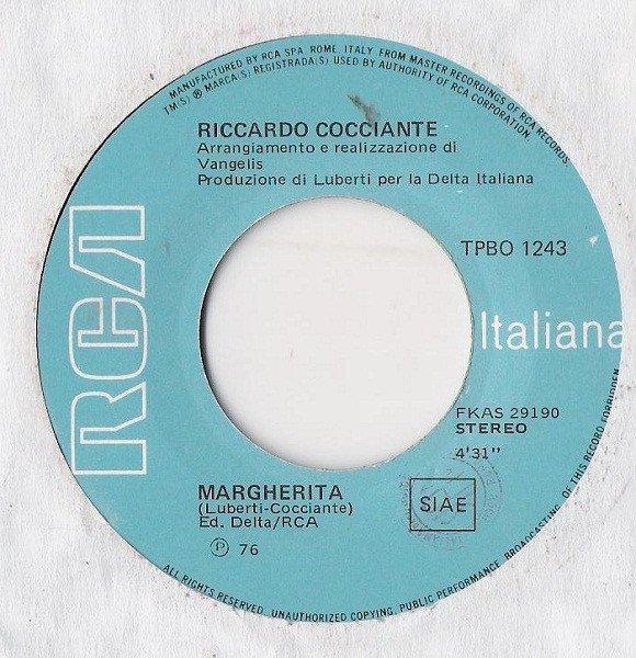 Vinyl / Riccardo Cocciante - Margherita / Primavera