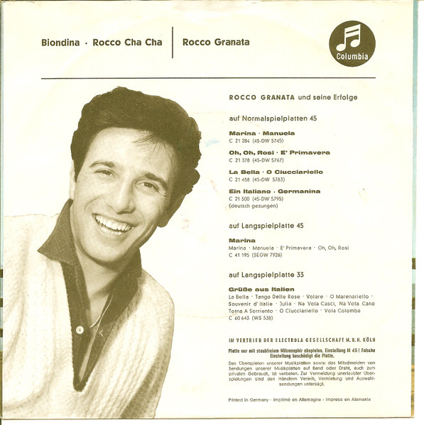 Vinyl / Rocco Granata - Biondina / Rocco Cha Cha