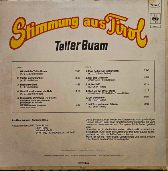 Vinyl / Telfer Buam - Stimmung Aus Tirol