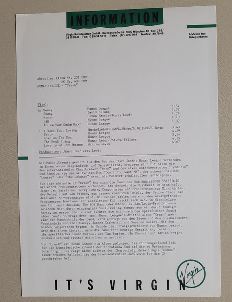 Label: Virgin - Cat#: 207 589