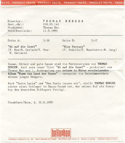 Vinyl / Thomas Berger (2) - Ab Auf Die Insel