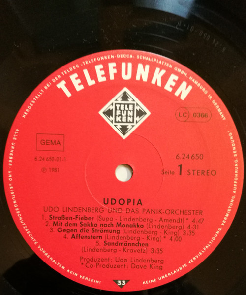 Vinyl / Udo Lindenberg & Panik Orchester* - Udopia