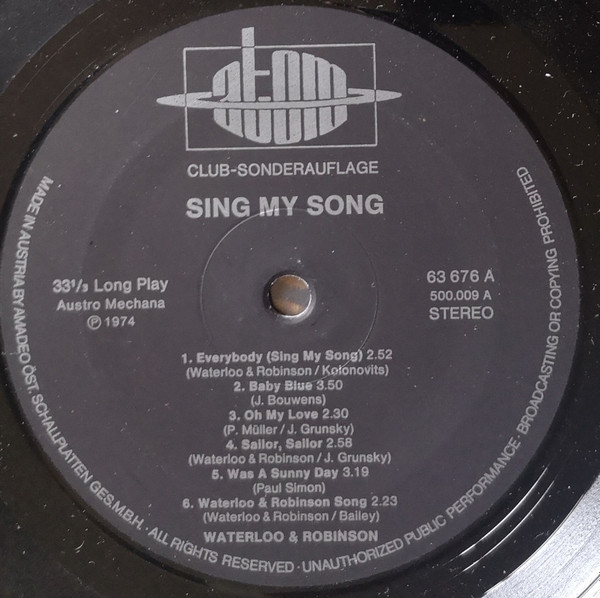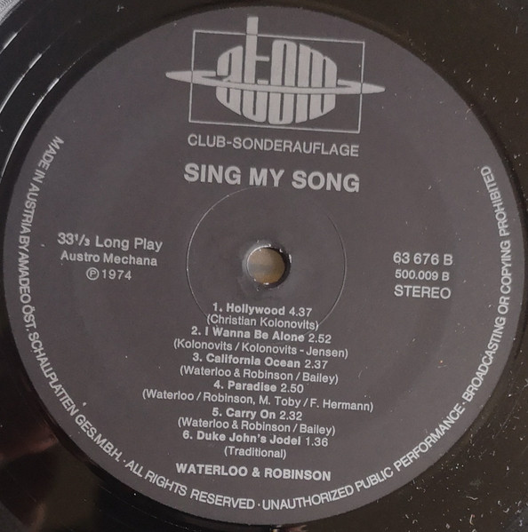 Vinyl / Waterloo & Robinson - Sing My Song